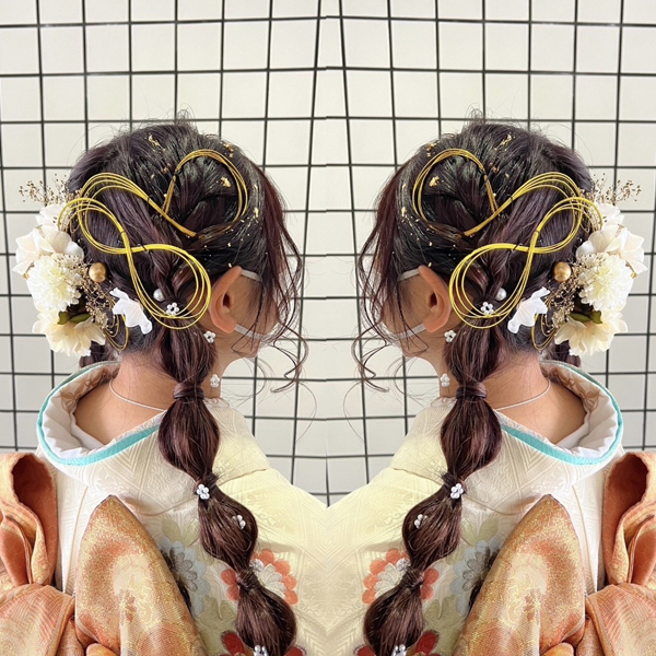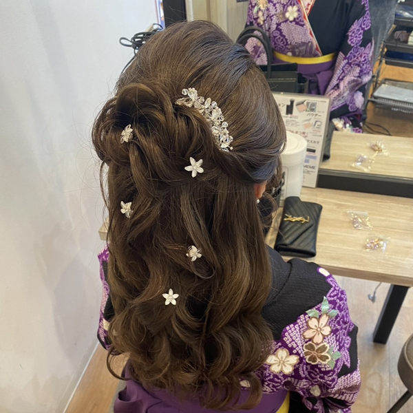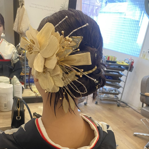 着物や浴衣に似合うおすすめヘアスタイルをご用意。髪飾りもお選びいただけます。