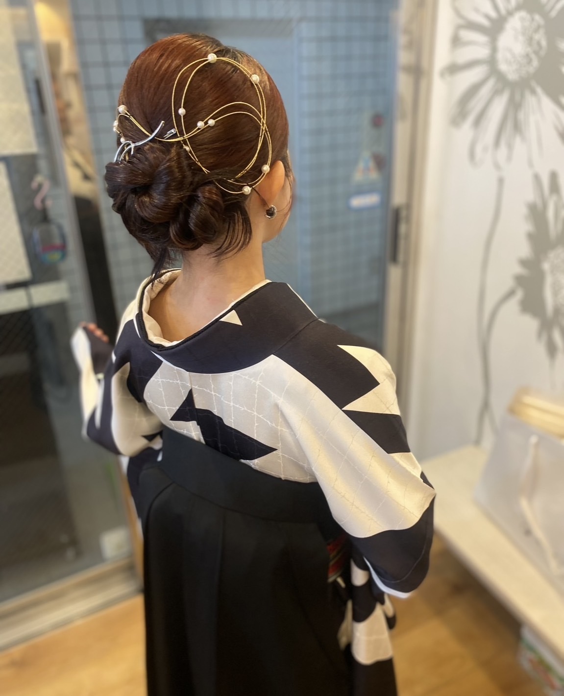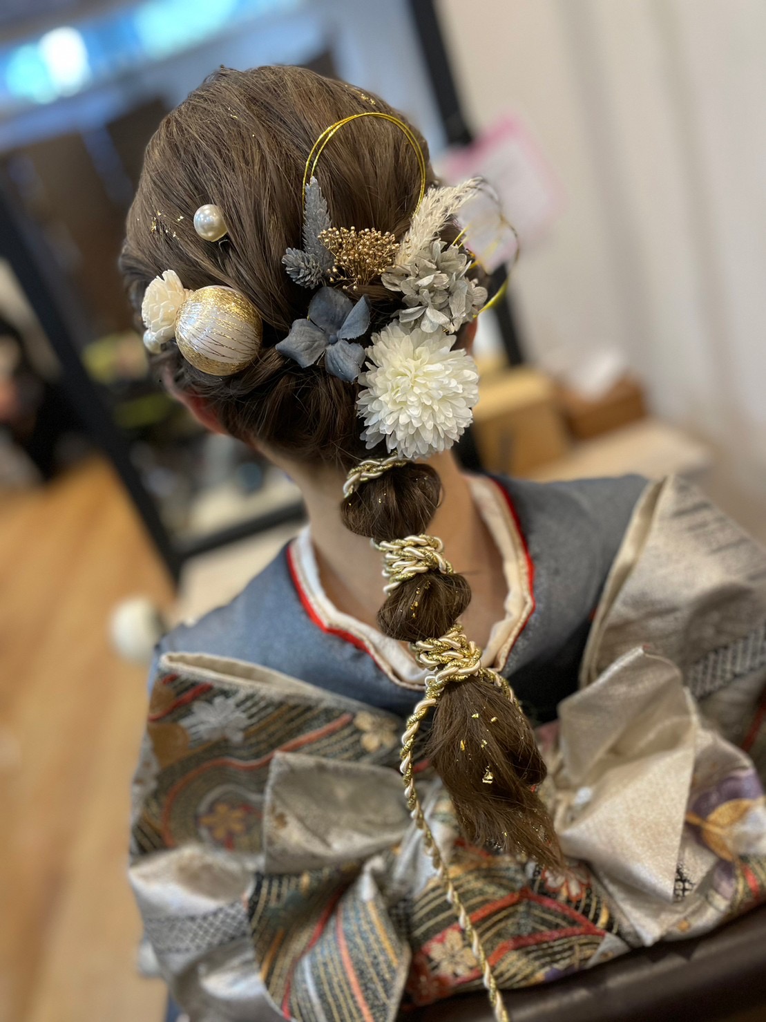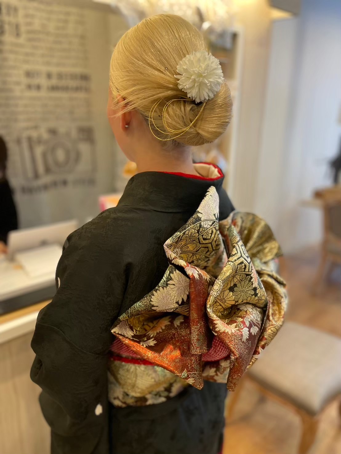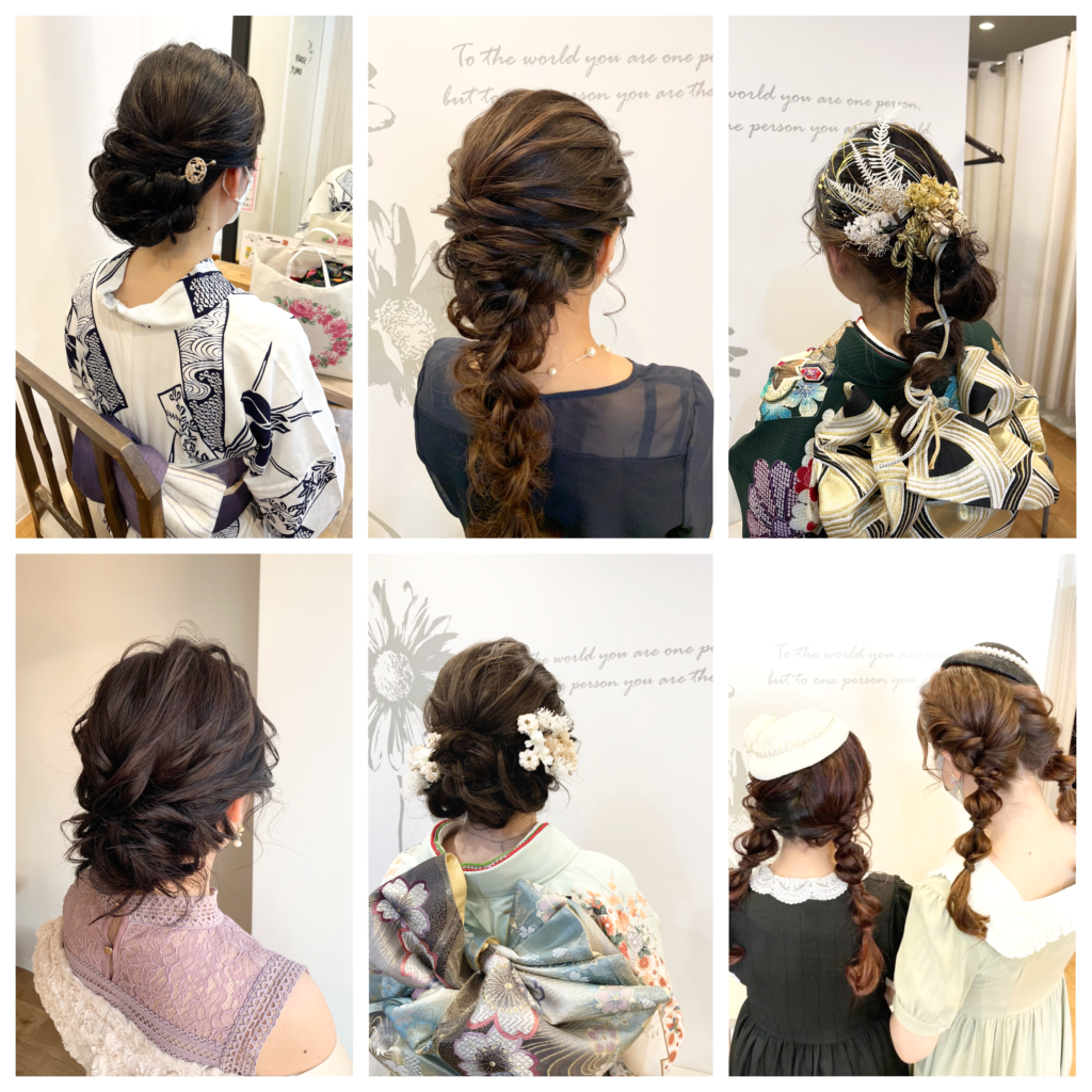 着物や浴衣に似合うおすすめヘアスタイルをご用意。髪飾りもお選びいただけます。